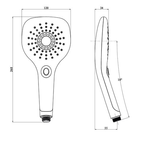 - Douchette ABS 3 jets anticalcaire Ø120 mm.