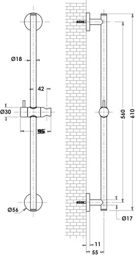 - Barre de douche noir mat Ø18 cm, hauteur 61 cm.