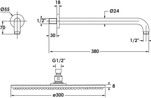 - Pomme de tête ronde diamètre 300mm monojet anticalcaire noir mat.