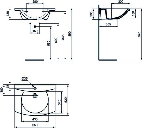 Lavabo PMR Matura 650 x 500 mm avec trop-plein - PORCHER