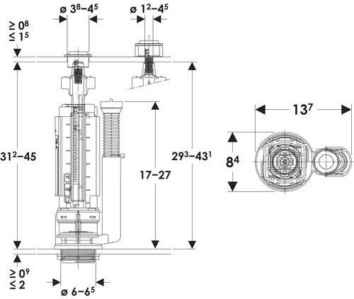 - Une soupape à double poussoir NF (réf. 178) à vidange partielle (3 litres) ou vidange totale (6 litres)