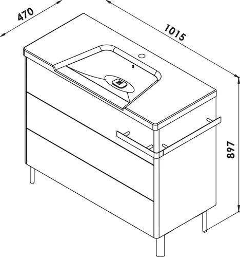 - 3 tiroirs spacieux à sortie totale dont : 1 sous vasque à fermeture ralentie avec poignée design porte