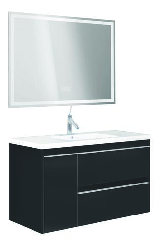 Meuble BOSTON à suspendre 100cm noir avec miroir LED LAUSANE
