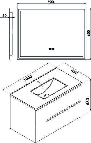 - Livré avec miroir LED LAUSANE 80x60cm avec contours sablés.