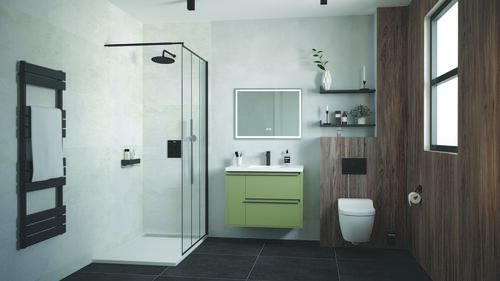 Meuble BOSTON à suspendre 100cm vert menthe avec miroir LED LAUSANE