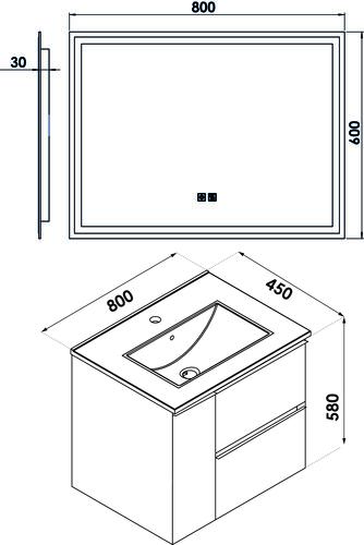 - Livré avec miroir LED LAUSANE 80x60cm avec contours sablés.