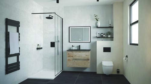 - Livré avec miroir LED SEVILLE 80x60cm avec contours aluminium noir.