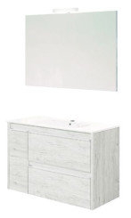 - Meuble à suspendre finition nordic, avec plan céramique blanc et vasque intégrée avec trop plein.