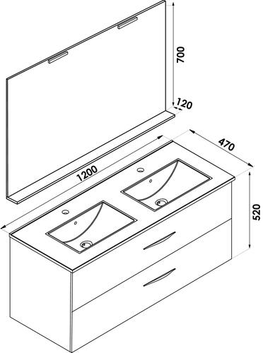 - Dimensions : Longueur : 120 cm x Profondeur : 47 cm x Hauteur : 52 cm.