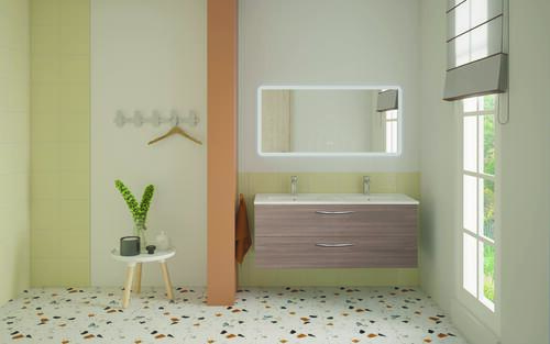 Meuble DUBAI à suspendre 120cm cérusé avec miroir LED ATHENES