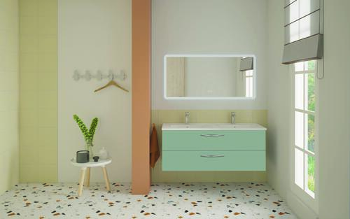 Meuble DUBAI à suspendre 120cm vert menthe avec miroir LED ATHENES