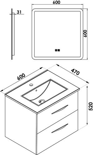 - Livré avec miroir LED ATHENES 60x60cm avec contours givrés.