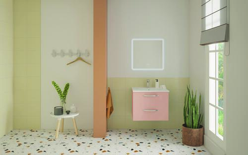 Meuble DUBAI à suspendre 60cm rose poudré avec miroir LED ATHENES