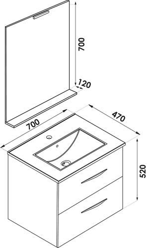 - Dimensions : Longueur : 70 cm x Profondeur : 47 cm x Hauteur : 52 cm.