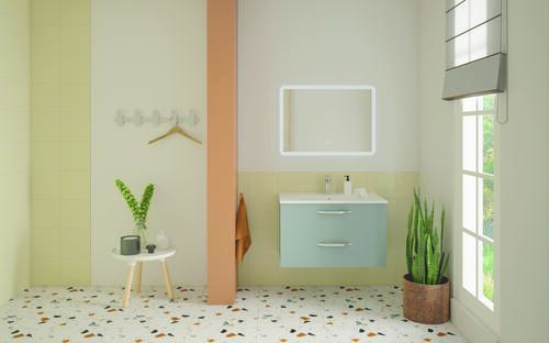 Meuble DUBAI à suspendre 80cm bleu bleuet avec miroir LED ATHENES