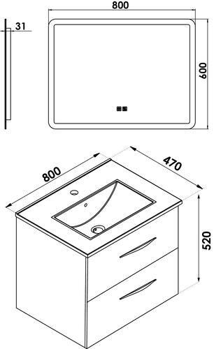 - Livré avec miroir LED ATHENES 80x60cm avec contours givrés.