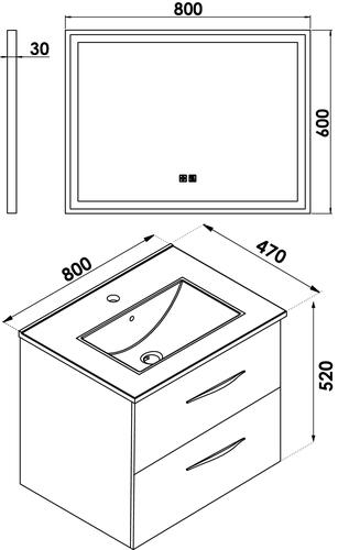 - Livré avec miroir LED SEVILLE 80x60cm avec contours aluminium noir.