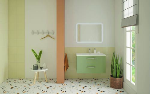 Meuble DUBAI à suspendre 80cm vert menthe avec miroir LED ATHENES