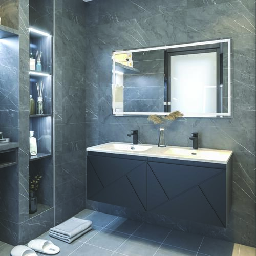 Meuble LONDRES a suspendre 120cm noir avec miroir LED SEVILLE