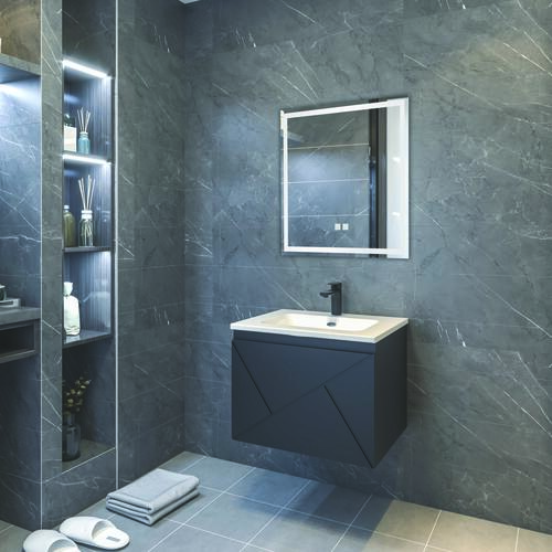 Meuble LONDRES a suspendre 60cm noir avec miroir LED SEVILLE