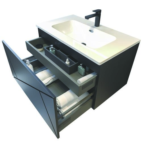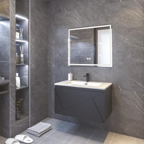 Meuble LONDRES a suspendre 80cm noir avec miroir LED SEVILLE
