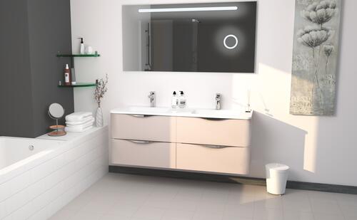 - Livré sans robinetterie, sans vidage, sans miroir, sans éclairage ni visserie de fixation murale.