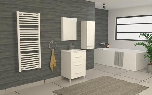 - Livré sans robinetterie, sans vidage, sans visserie de fixation murale, sans miroir ni éclairage.