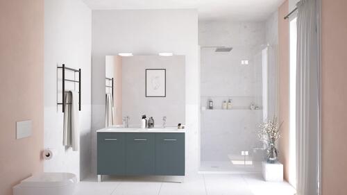 - Plan céramique blanc avec vasque moulée.