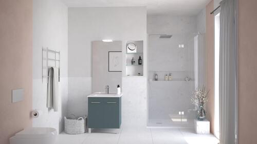 - Miroir affleurant collé sur panneau hydrofuge de 16mm avec applique LED classe 2 IP44, hauteur : 108cm.