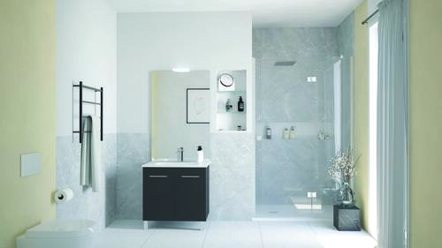 - Miroir affleurant collé sur panneau hydrofuge de 16mm avec applique LED classe 2 IP44, hauteur : 108cm.