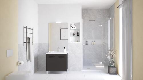 - Plan céramique blanc avec vasque moulée.