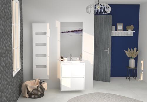 Meuble ODESSA à suspendre 2 tiroirs 60cm blanc miroir affleurant