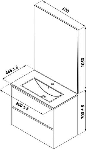 Meuble ODESSA à suspendre 2 tiroirs 60cm bois miroir affleurant