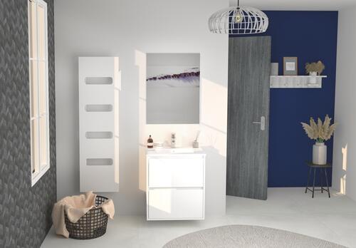 Meuble ODESSA à suspendre 2 tiroirs 80cm blanc miroir suspendu