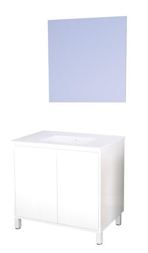 Meuble ODESSA sur pieds 2 portes 80cm blanc miroir suspendu