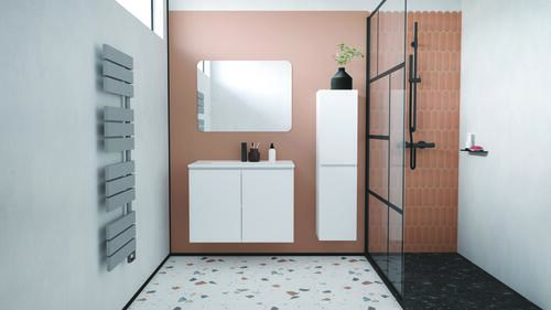 - Plan vasque résine blanc pour un rendu classe et moderne.