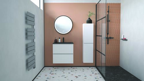 Meuble OSLO à suspendre 2 tiroirs 60cm blanc mat avec miroir LED ALEXANDRIE