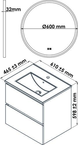 - Livré avec miroir LED Alexandrie ø60 avec cadre en aluminium noir.