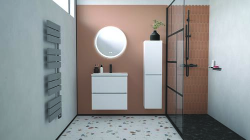 Meuble OSLO à suspendre 2 tiroirs 60cm blanc mat avec miroir LED LOUXOR