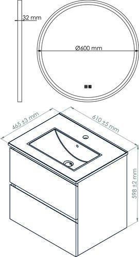 - Livré avec miroir LED Alexandrie ø60 avec cadre en aluminium noir.
