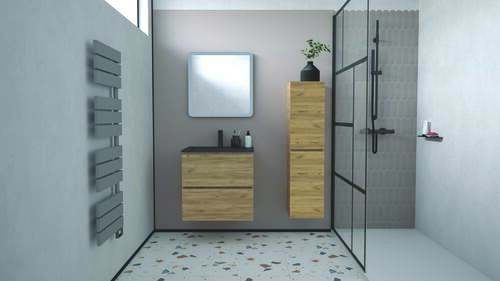 Meuble OSLO à suspendre 2 tiroirs 60cm bois avec vasque noire