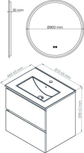 - Livré avec miroir LED Louxor ø80 avec cadre contours sablés.