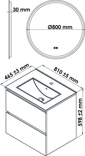 - Livré avec miroir LED Louxor ø80 avec cadre contours sablés.