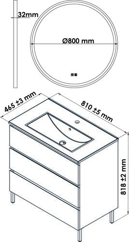 - Livré avec miroir LED Alexandrie ø80 avec cadre en aluminium noir.