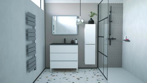 Meuble OSLO à suspendre 3 tiroirs 80cm blanc mat avec vasque noire