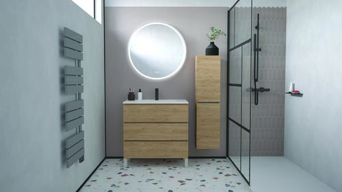 Meuble OSLO à suspendre 3 tiroirs 80cm bois avec miroir LED LOUXOR