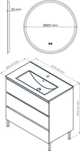 - Livré avec miroir LED Louxor ø80 avec cadre contours sablés.
