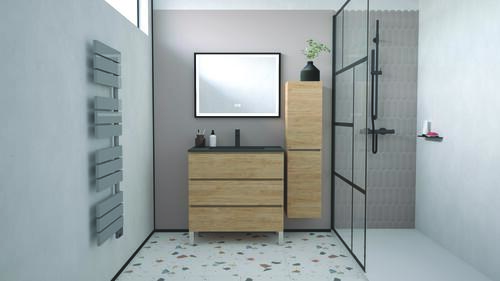 Meuble OSLO à suspendre 3 tiroirs 80cm bois avec miroir LED SEVILLE