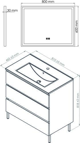 - Livré avec miroir LED Seville 80x60cm avec cadre en aluminium noir.