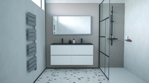 Meuble OSLO à suspendre 4 tiroirs 120cm blanc mat avec vasque noire